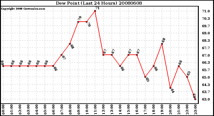 Milwaukee Weather -- 20080608 Dew Point (Last 24 Hours) -- From curtronics.com by Curt Blank