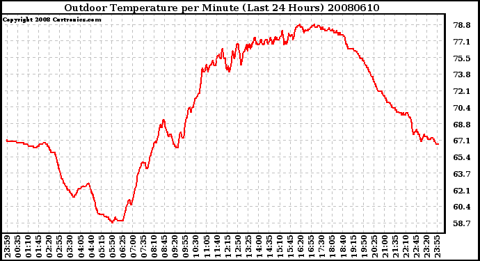 Milwaukee Weather -- 20080610 Outdoor Temperature per Minute (Last 24 Hours) -- From curtronics.com by Curt Blank