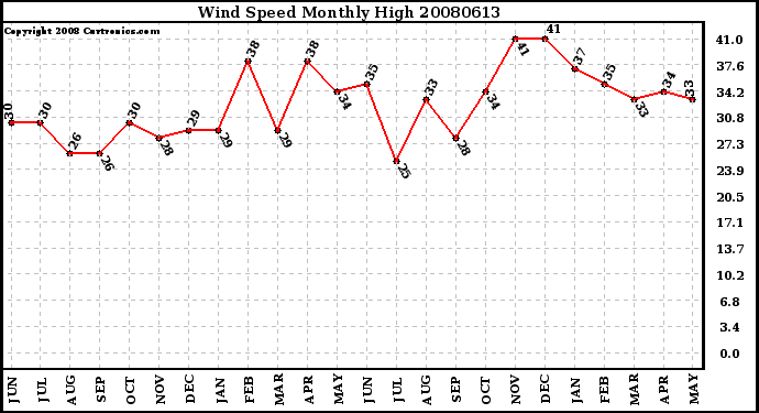 20080613 Wind Speed Monthly High
