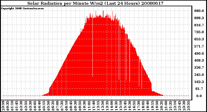 Milwaukee Weather -- 20080617 Solar Radiation per Minute W/m2 (Last 24 Hours) -- From curtronics.com by Curt Blank