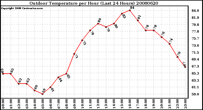 Milwaukee Weather -- 20080620 Outdoor Temperature per Hour (Last 24 Hours) -- From curtronics.com by Curt Blank