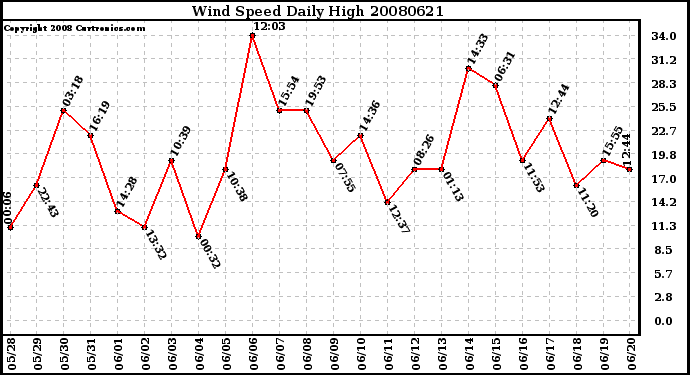 Milwaukee Weather -- 20080621 Wind Speed Daily High -- From curtronics.com by Curt Blank