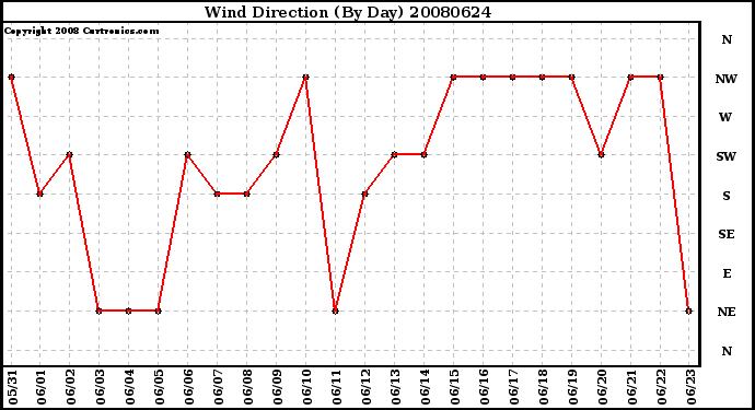 Milwaukee Weather -- 20080624 Wind Direction (By Day) -- From curtronics.com by Curt Blank