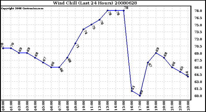 Milwaukee Weather -- 20080628 Wind Chill (Last 24 Hours) -- From curtronics.com by Curt Blank