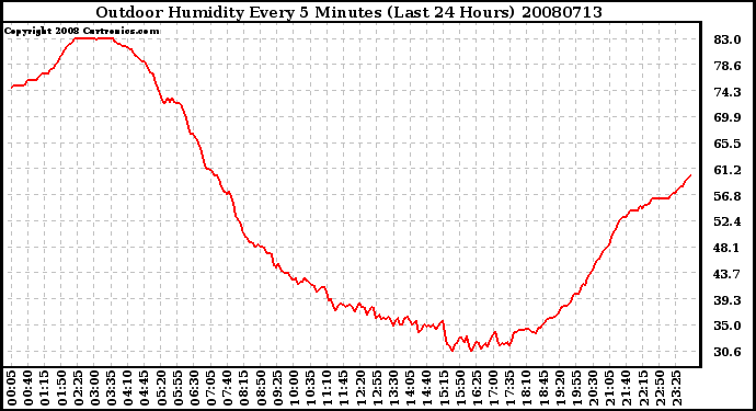 20080713 Outdoor Humidity Every 5 Minutes (Last 24 Hours)