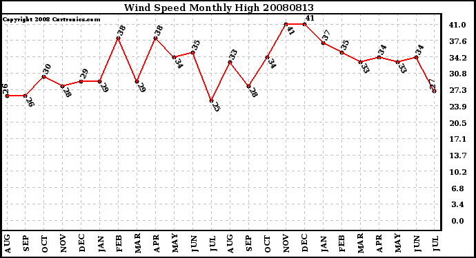 Milwaukee Weather -- 20080813 Wind Speed Monthly High -- From curtronics.com by Curt Blank