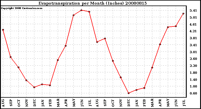 Milwaukee Weather -- 20080815 Evapotranspiration per Month (Inches) -- From curtronics.com by Curt Blank