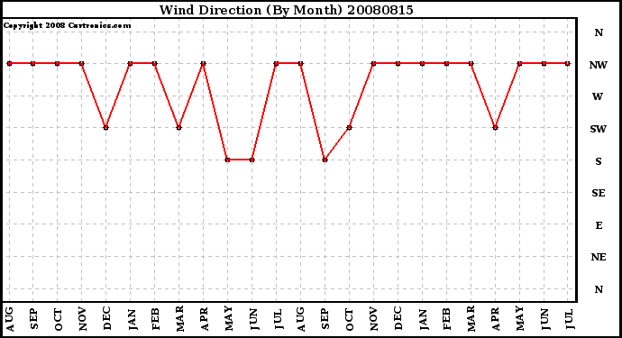 Milwaukee Weather -- 20080815 Wind Direction (By Month) -- From curtronics.com by Curt Blank