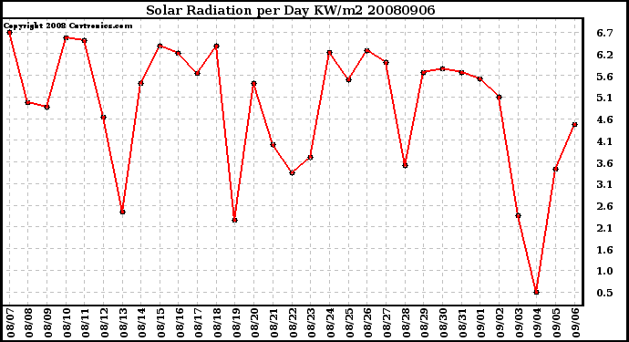 Milwaukee Weather -- 20080906 Solar Radiation per Day KW/m2 -- From curtronics.com by Curt Blank