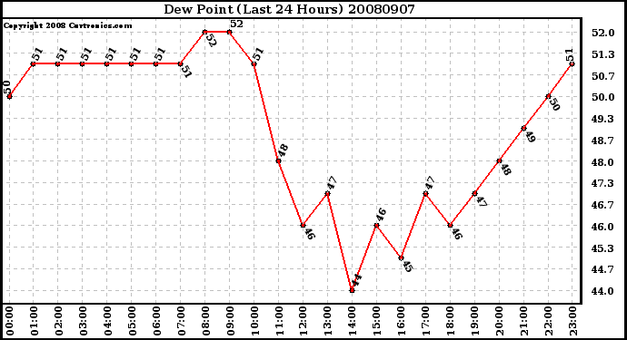 Milwaukee Weather -- 20080907 Dew Point (Last 24 Hours) -- From curtronics.com by Curt Blank