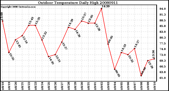 Milwaukee Weather -- 20080911 Outdoor Temperature Daily High -- From curtronics.com by Curt Blank