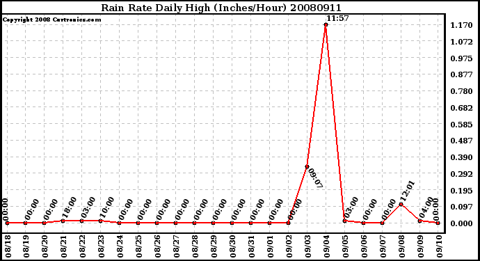 Milwaukee Weather -- 20080911 Rain Rate Daily High (Inches/Hour) -- From curtronics.com by Curt Blank
