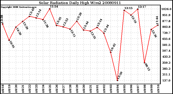 20080911 Solar Radiation Daily High W/m2