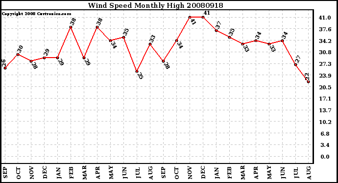 20080918 Wind Speed Monthly High