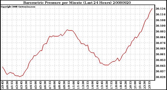 Milwaukee Weather -- 20080920 Barometric Pressure per Minute (Last 24 Hours) -- From curtronics.com by Curt Blank