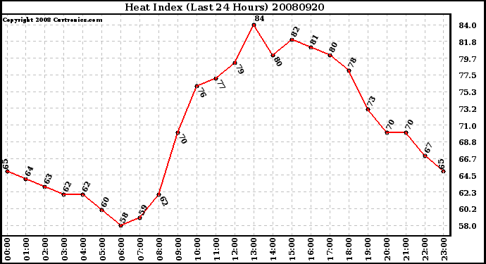 Milwaukee Weather -- 20080920 Heat Index (Last 24 Hours) -- From curtronics.com by Curt Blank