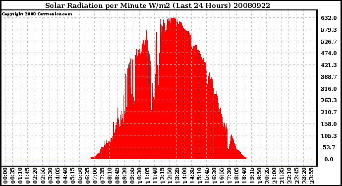 Milwaukee Weather -- 20080922 Solar Radiation per Minute W/m2 (Last 24 Hours) -- From curtronics.com by Curt Blank