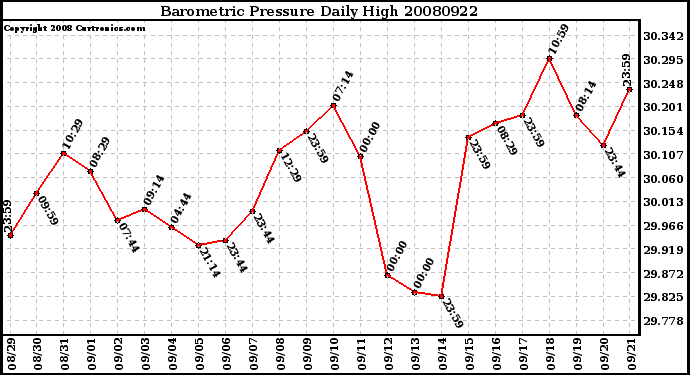Milwaukee Weather -- 20080922 Barometric Pressure Daily High -- From curtronics.com by Curt Blank