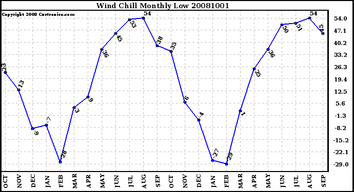 Milwaukee Weather -- 20081001 Wind Chill Monthly Low -- From curtronics.com by Curt Blank