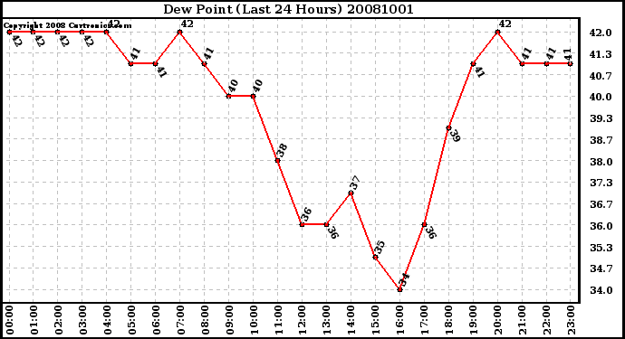 Milwaukee Weather -- 20081001 Dew Point (Last 24 Hours) -- From curtronics.com by Curt Blank