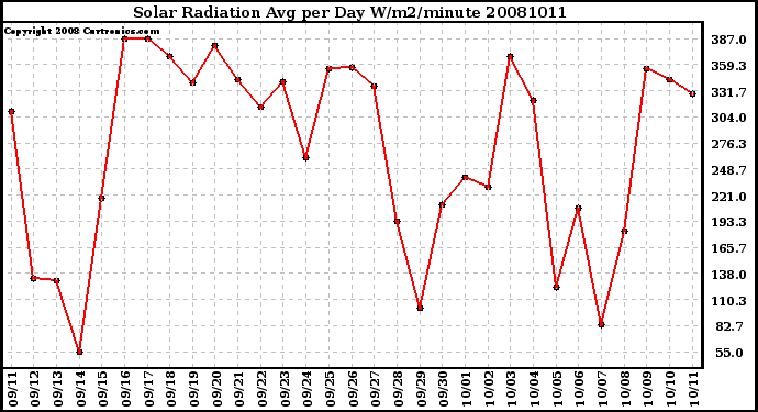 Milwaukee Weather -- 20081011 Solar Radiation Avg per Day W/m2/minute -- From curtronics.com by Curt Blank