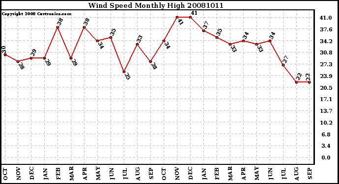 20081011 Wind Speed Monthly High