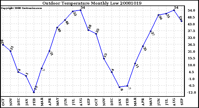 Milwaukee Weather -- 20081019 Outdoor Temperature Monthly Low -- From curtronics.com by Curt Blank