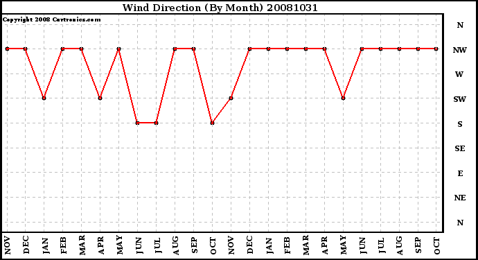 Milwaukee Weather -- 20081031 Wind Direction (By Month) -- From curtronics.com by Curt Blank