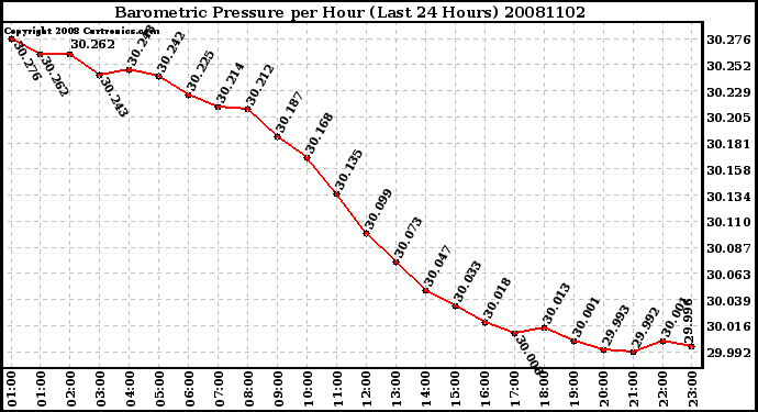 Milwaukee Weather -- 20081102 Barometric Pressure per Hour (Last 24 Hours) -- From curtronics.com by Curt Blank