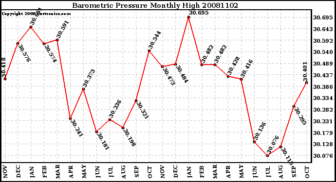 Milwaukee Weather -- 20081102 Barometric Pressure Monthly High -- From curtronics.com by Curt Blank