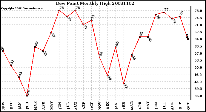 20081102 Dew Point Monthly High
