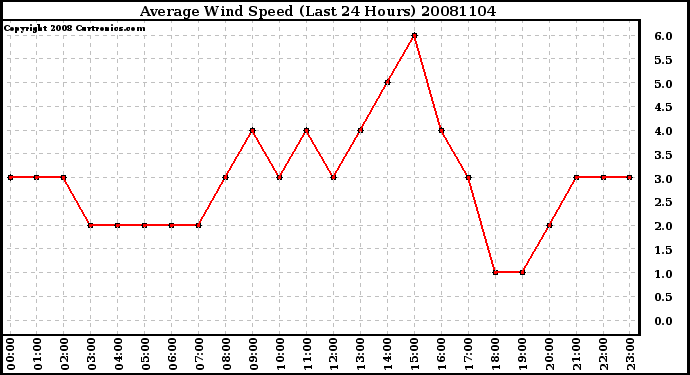 Milwaukee Weather -- 20081104 Average Wind Speed (Last 24 Hours) -- From curtronics.com by Curt Blank