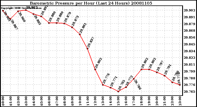 Milwaukee Weather -- 20081105 Barometric Pressure per Hour (Last 24 Hours) -- From curtronics.com by Curt Blank