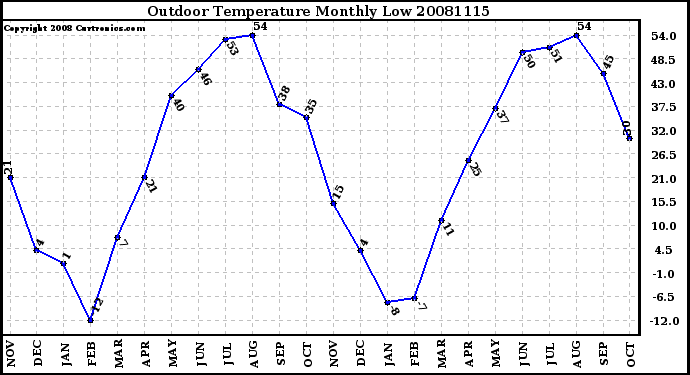 Milwaukee Weather -- 20081115 Outdoor Temperature Monthly Low -- From curtronics.com by Curt Blank