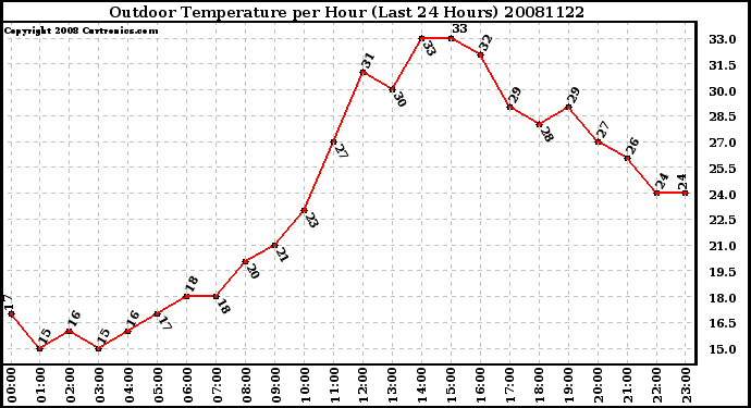 Milwaukee Weather -- 20081122 Outdoor Temperature per Hour (Last 24 Hours) -- From curtronics.com by Curt Blank