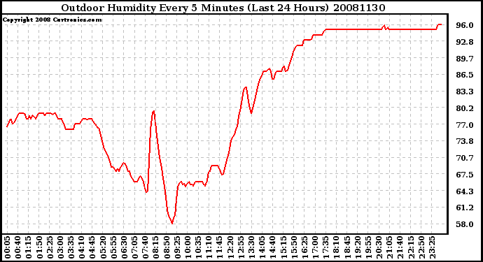 20081130 Outdoor Humidity Every 5 Minutes (Last 24 Hours)