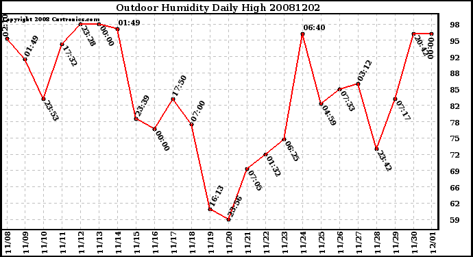 Milwaukee Weather -- 20081202 Outdoor Humidity Daily High -- From curtronics.com by Curt Blank