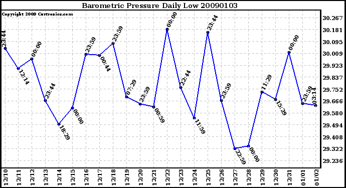 Milwaukee Weather -- 20090103 Barometric Pressure Daily Low -- From curtronics.com by Curt Blank