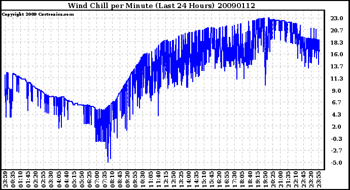 Milwaukee Weather -- 20090112 Wind Chill per Minute (Last 24 Hours) -- From curtronics.com by Curt Blank