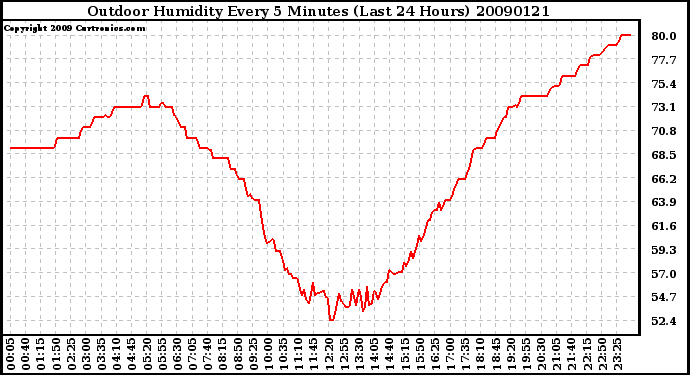 20090121 Outdoor Humidity Every 5 Minutes (Last 24 Hours)
