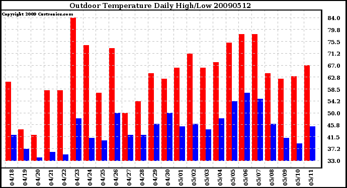 Milwaukee Weather -- 20090512 Outdoor Temperature Daily High/Low -- From curtronics.com by Curt Blank