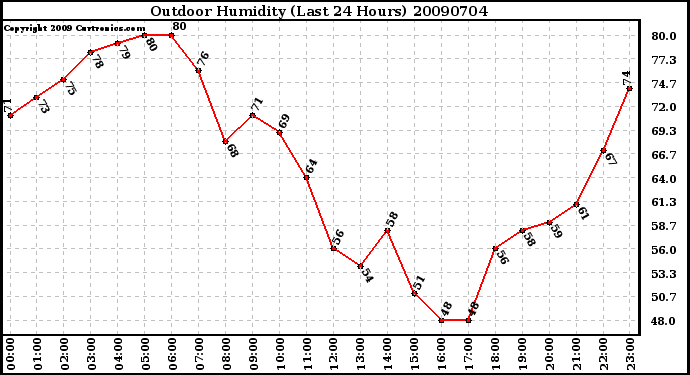 Milwaukee Weather -- 20090704 Outdoor Humidity (Last 24 Hours) -- From curtronics.com by Curt Blank