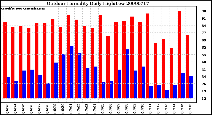 Milwaukee Weather -- 20090717 Outdoor Humidity Daily High/Low -- From curtronics.com by Curt Blank