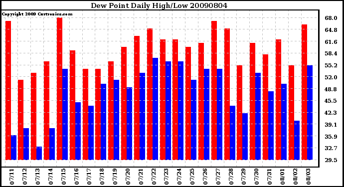 Milwaukee Weather -- 20090804 Dew Point Daily High/Low -- From curtronics.com by Curt Blank