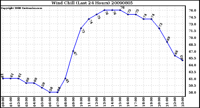 Milwaukee Weather -- 20090805 Wind Chill (Last 24 Hours) -- From curtronics.com by Curt Blank