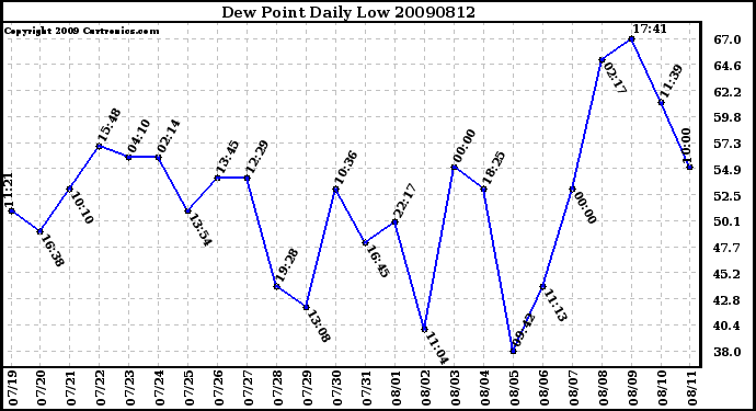 Milwaukee Weather -- 20090812 Dew Point Daily Low -- From curtronics.com by Curt Blank