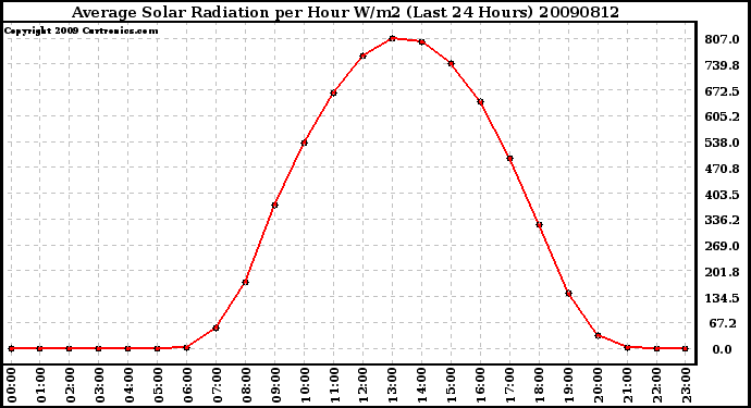 Milwaukee Weather -- 20090812 Average Solar Radiation per Hour W/m2 (Last 24 Hours) -- From curtronics.com by Curt Blank