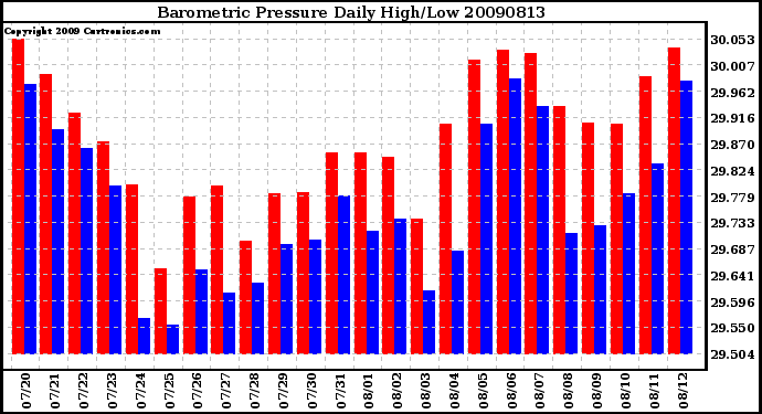 20090813 Barometric Pressure Daily High/Low
