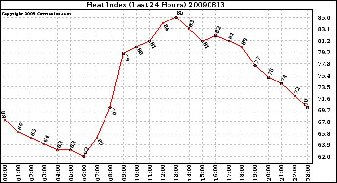 Milwaukee Weather -- 20090813 Heat Index (Last 24 Hours) -- From curtronics.com by Curt Blank