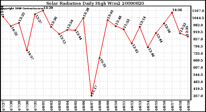 Milwaukee Weather -- 20090820 Solar Radiation Daily High W/m2 -- From curtronics.com by Curt Blank